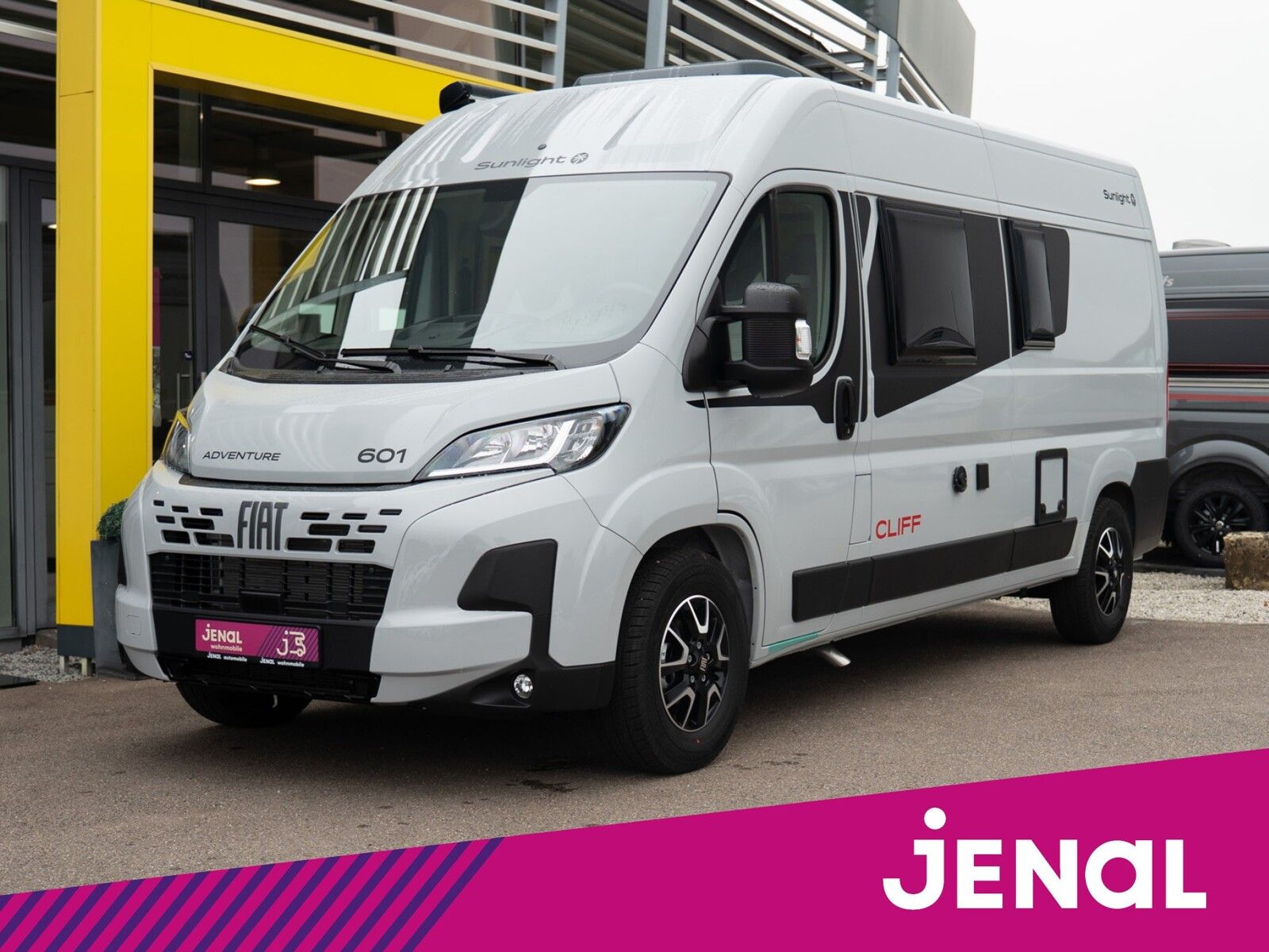 - Adventure Ausstattung 601 (Fiat Ducato 3.500 kg | 2.2 | 103 kW | 140 PS Euro 6 | 6-Gang-Schaltgetriebe, Adventure Beklebung, Wohnwelt Adventure, Markise (schwarz), Panoramadachhaube 70 x 50 cm, Duschausstattung, Fenster im Bad, Kleiderstange in der Nasszelle, Breite Einstiegsstufe, Drehplatte für Tischerweiterung an der Sitzgruppe, Stoßfänger lackiert, Skid Plate Schwarz, Nebelscheinwerfer, Lenkrad & Schaltknauf in Lederausführung, Luftauslässe mit Applikationen Silber (Techno-Trim), 16" Alufelgen Bi-Color)